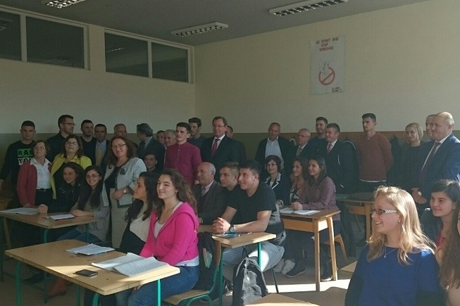 Pastaj delegacioni nga Shqipëria vizitoi bibliotekën e shkollës, kabinetet edhe nxënësit, ku u njoftuan me kushtet në të cilat mësojnë ata.
